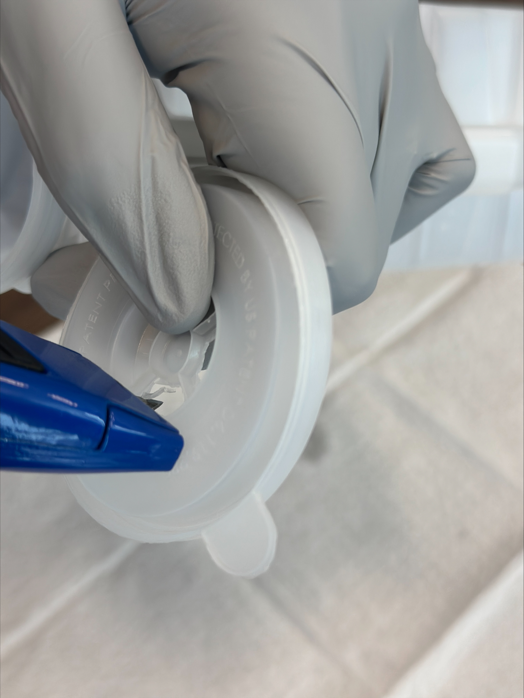 2. Cut a hole in the lid using a box cutter or utility knife to allow insertion of IV tubing. Additional holes can be added if needed for different simulation scenarios.